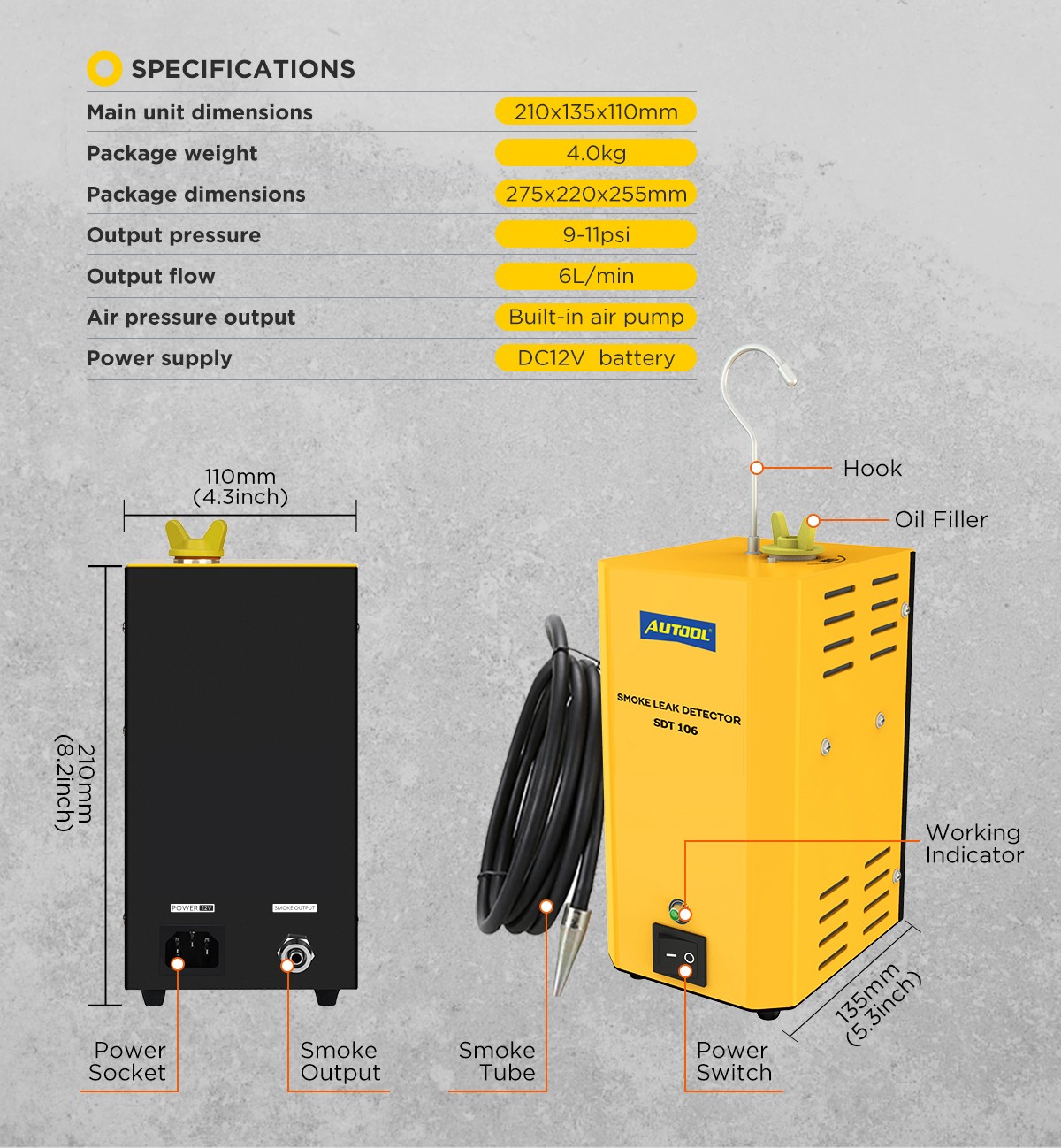 AUTOOL SDT 106 Auto Rauch Leck Detektor Eigenschaften:
