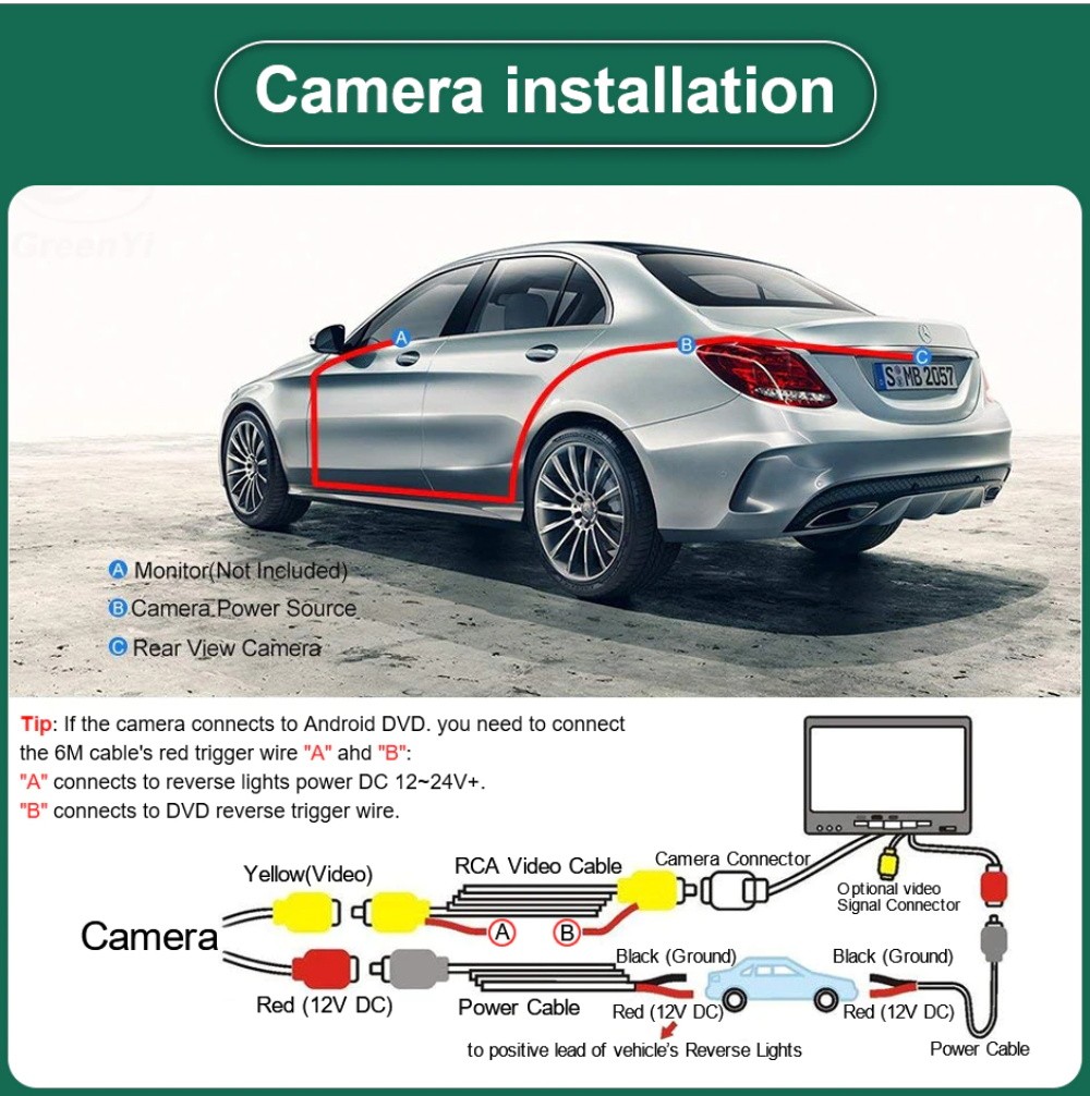 * Die Kamera unterstützt sowohl ahd und cvbs Videosignal, kann es mit ahd Android-Monitoren und allen cvbs tft Monitoren arbeiten.