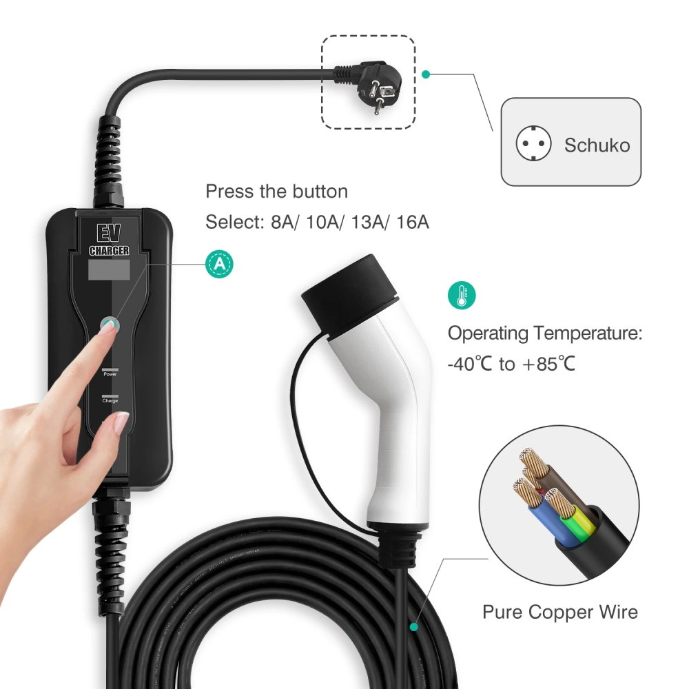 Diese elektrische auto ladegerät ist ihr zuverlässiger partner für schnelle lade von elektrische autos. Schuko steckdosen können verwendet werden überall in ihre garage oder haus. Es ist ein haushalt ladegerät, dass sie muss haben jeden tag.