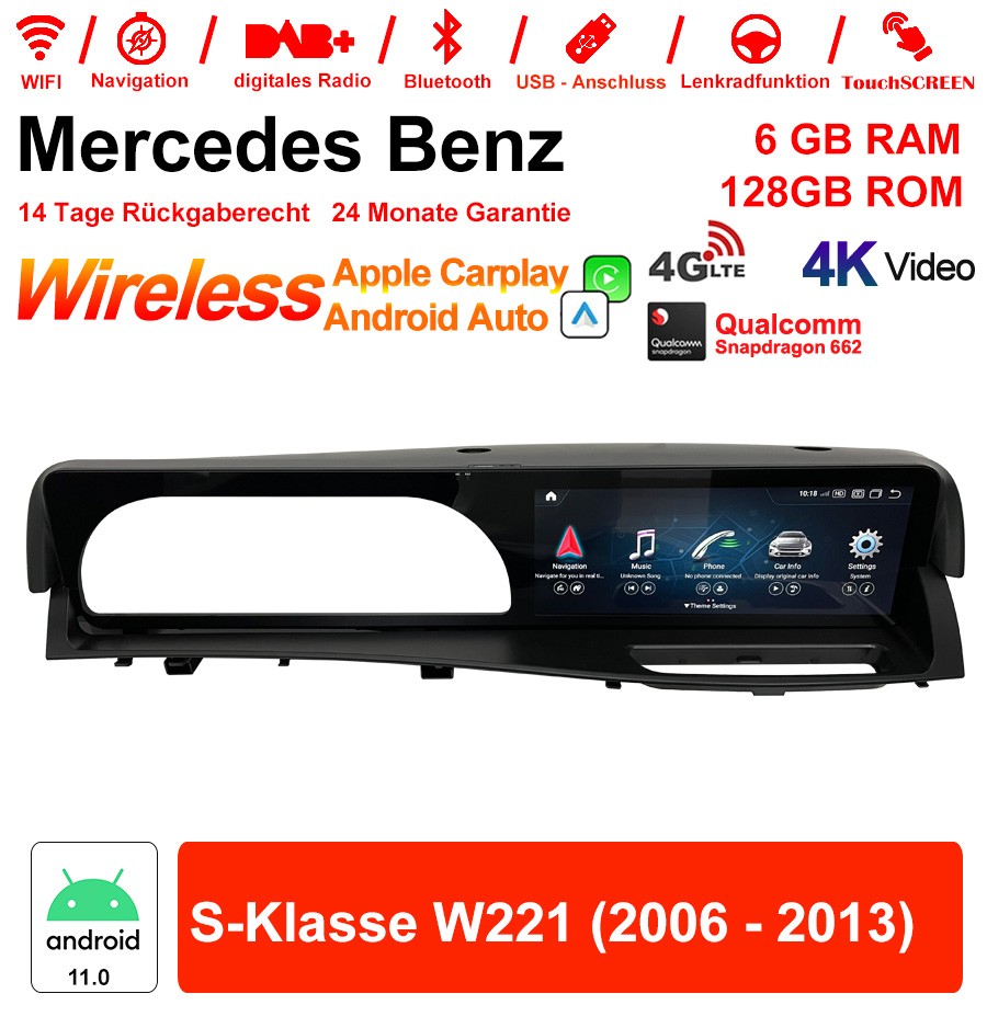 12.3 zoll Qualcomm Snapdragon 685 8 Core Android 13.0 4G LTE Autoradio /Multimedia 8GB RAM 128GB ROM Für Benz S-Klasse W221 2006-2013 Built-in Carplay/Android Auto