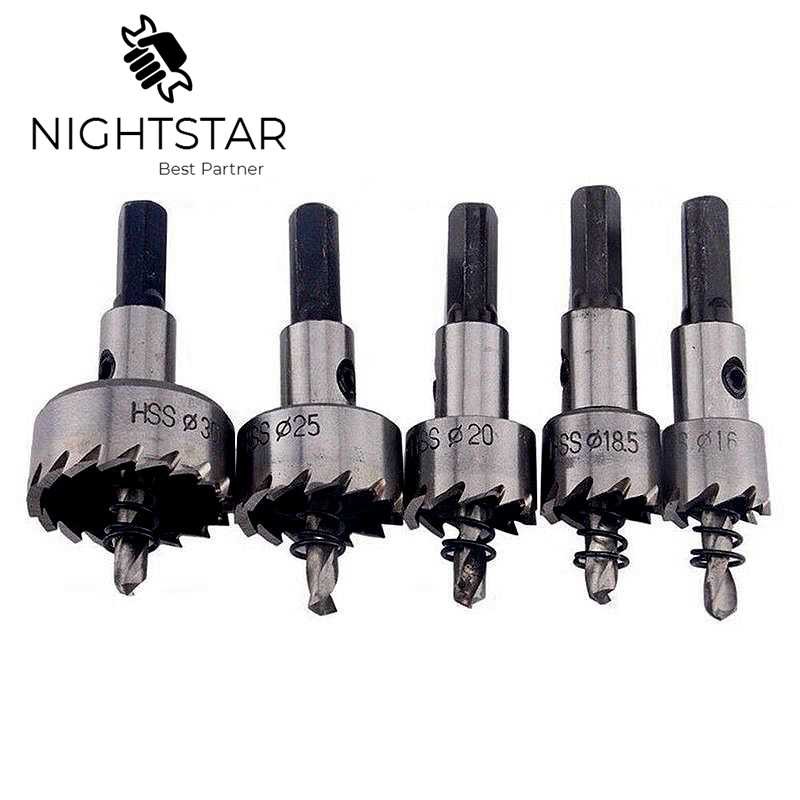 5Pcs Hartmetall Spitze HSS Bohrer Loch Sah Set Edelstahl Metall Legierung 16/18.5/20/25/30mm Holzbearbeitung Werkzeuge