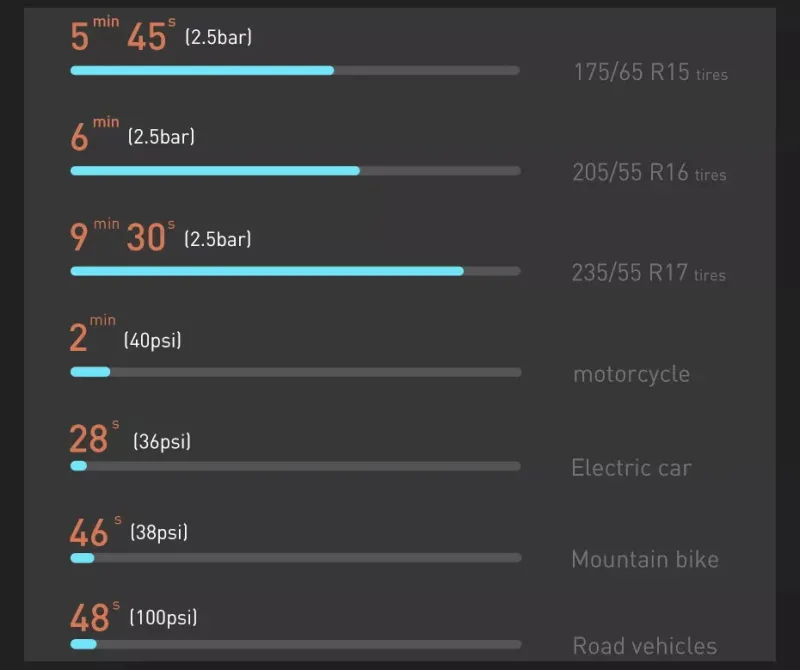Pumpen Sie in 20 Minuten drei 175-Zoll-Reifen hintereinander mit 2,5 bar auf