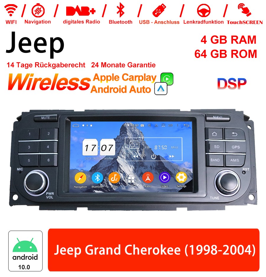 5 Zoll Android 12.0 Autoradio / Multimedia 4GB RAM 64GB ROM Für Jeep Grand Cherokee (1998-2004) Built-in Carplay / Android Auto