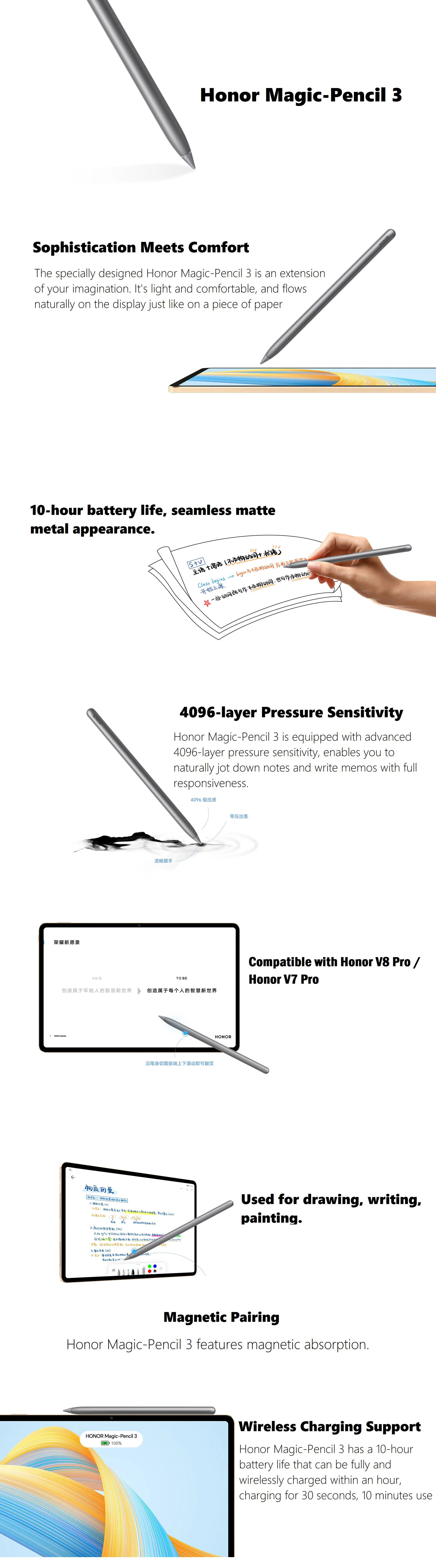● Magic-Pencil 3 verfügt über präzise Linien und sanfte Striche. Unterstützen Sie den Drucksensor der Stufe 4096, und die Dicke der Linie ändert sich je nach Stärke. Ultrageringe Verzögerung, glatt und geschmeidig