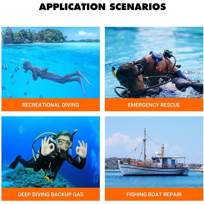 Smaco s400pro mini scuba tank verwendet ein Verlängerung srohr, um an das Manometer anzuschließen, das für uns bequemer ist, das Manometer beim Tauchen zu überprüfen. Zur gleichen Zeit wurde unsere ursprüngliche tragbare Umhängetasche zu einer tragbaren Hüft tasche gewechselt. Sie können es leicht tragen und Ihre Hände frei machen, um mehr Dinge unter Wasser zu tun.