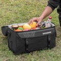 Eine Netz tasche auf der Vorderseite und Seite der Tasche hält eine Wasser flasche und Gadgets