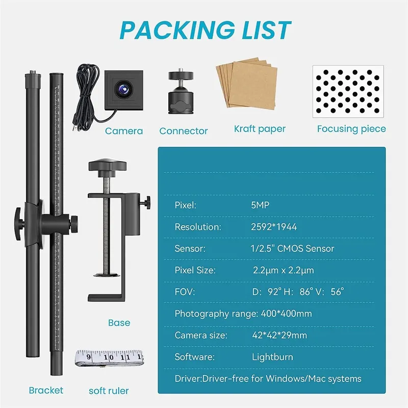 Hohe Anpassungsfähigkeit: Diese Kamera ist mit allen Rahmenlasergravurmaschinen von Atomstack, Ortur, NEJE und xTool kompatibel (Lightburn-Software ist erforderlich).