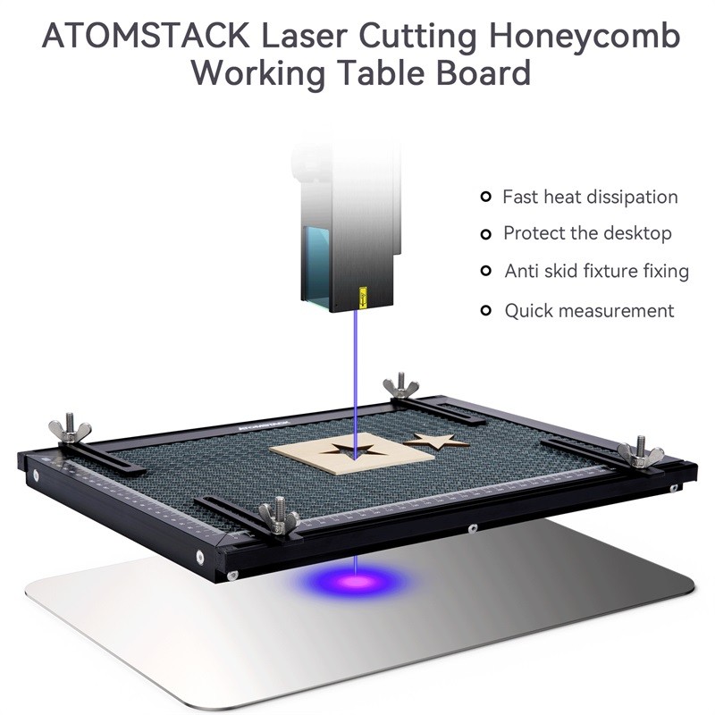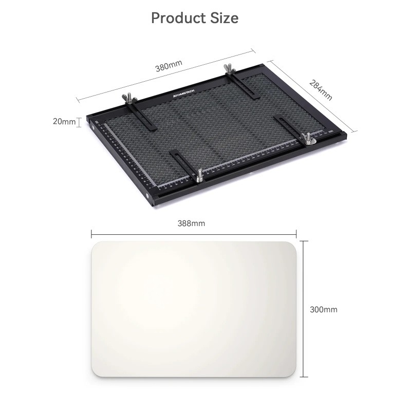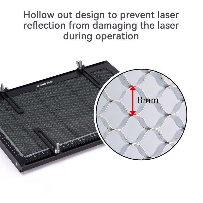 Atoms tack Waben brett nimmt wissenschaft liche und vernünftige Waben höhe Größe Design, um Laser brennende Werkbank oder Desktop zu verhindern. Gleichzeitig ist es mit einem Anti-Schneid-Metall-Schutz brett ausgestattet, das den Desktop vor Lasers chäden schützen kann. Es ist sehr geeignet für verschiedene stile. CO2-oder Diodenlaser-Gravier maschine.
