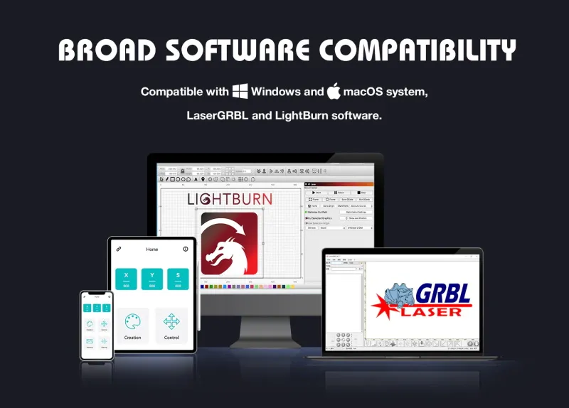 Unterstützte Software:Laser grbl (Fenster),Light burn (häufig)