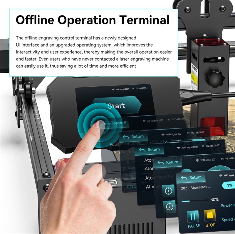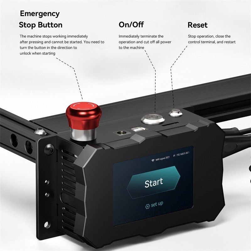 Mehr Funktion: Verwendet eine integrierte Schraubens tange, die die Bewegung des Lasers präziser und die Kupplung haltbarer macht. Offline-Gravur unterstützen; Im Falle einer unerwarteten Situation stoppen Sie die Maschine jederzeit, um die Gravur sicherer zu machen. Die Laser-Sinter temperatur ist bis zu 800 ~ 850 ℃.