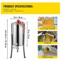 Der Honigschleuderkörper besteht aus rostfreiem Stahl und ist durch nahtloses Schweißen Maschinen-gewalzt. Hochglanzpolierter Edelstahlrahmen in Lebensmittelqualität kann Rost und Abrieb widerstehen.