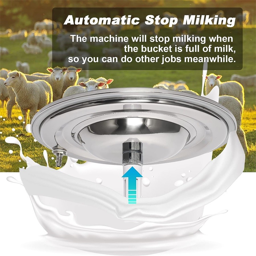 Der Milchkübel ist mit einem Rückschlagventil ausgestattet. So wird die Melkmaschine automatisch aufhören, wenn die Milch voll ist und verhindert, dass Milch in die Pumpe fließt, was die Lebensdauer der Ausrüstung verlängert. Der klappbare Griff ist auf 2 Seiten und im Inneren. Super bequem zum Tragen und Ausgießen von Milch.