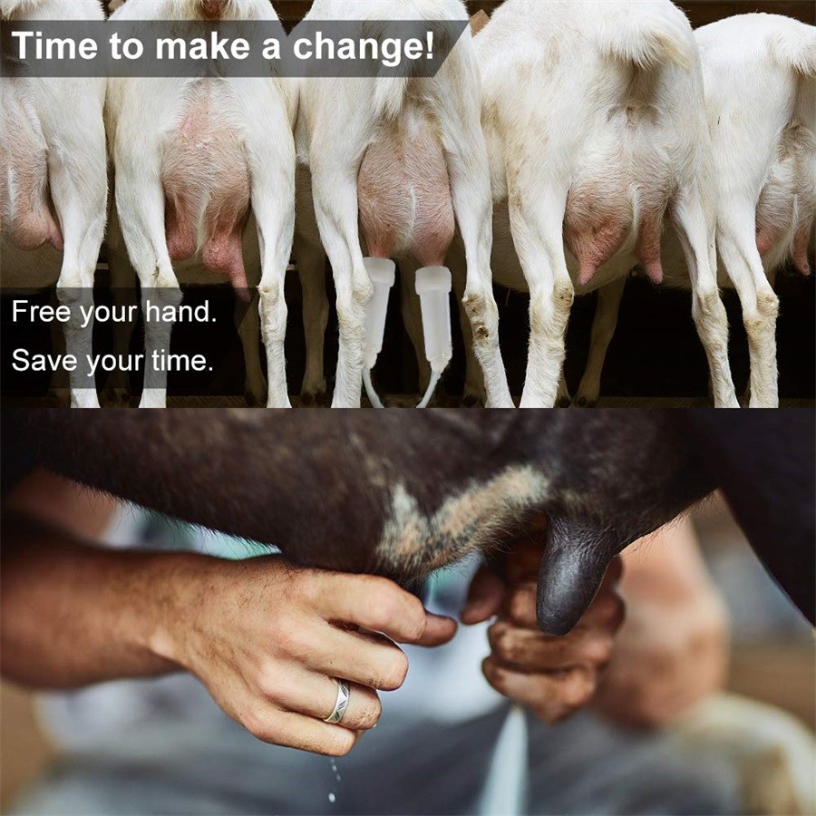 Der Pulsierzyklus beträgt 40 ~ 46 mal pro Minute, mit einer Ziegenmilchmaschine spart mindestens eine Hälfte der Arbeit und Zeit. Keine Notwendigkeit, Kälte im Winter oder im Sommer beim Melken zu vertragen.