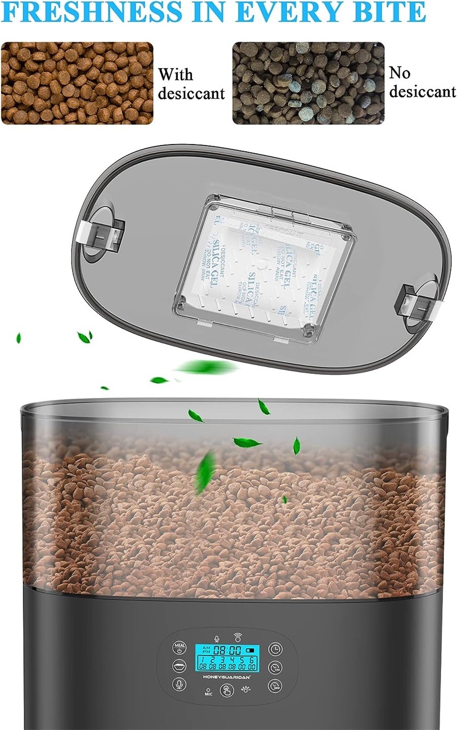 Der futterautomat katze app enthält einen Trockenmittelbeutel und einen Dichtungsstreifen, um das Futter frisch und knusprig zu halten. Und der Sicherheits-Schiebeverschlussdeckel macht es Haustieren unmöglich, den Futterspender zu öffnen und sich für zusätzliches Futter in den Futterspender zu schleichen. Die Schüssel aus lebensmittelechtem Edelstahl ist zur Reinigung abnehmbar, sorgt für Gesundheit und Hygiene und hält Ihr Haustier von Kinnakne fern.