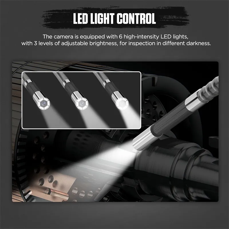 4.[LED-Lichts teuerung]: Die Kamera ist mit 6 LED-Leuchten mit hoher Intensität ausgestattet. mit 3 Stufen einstellbarer Helligkeit, zur Inspektion in verschiedenen Dunkelheit.