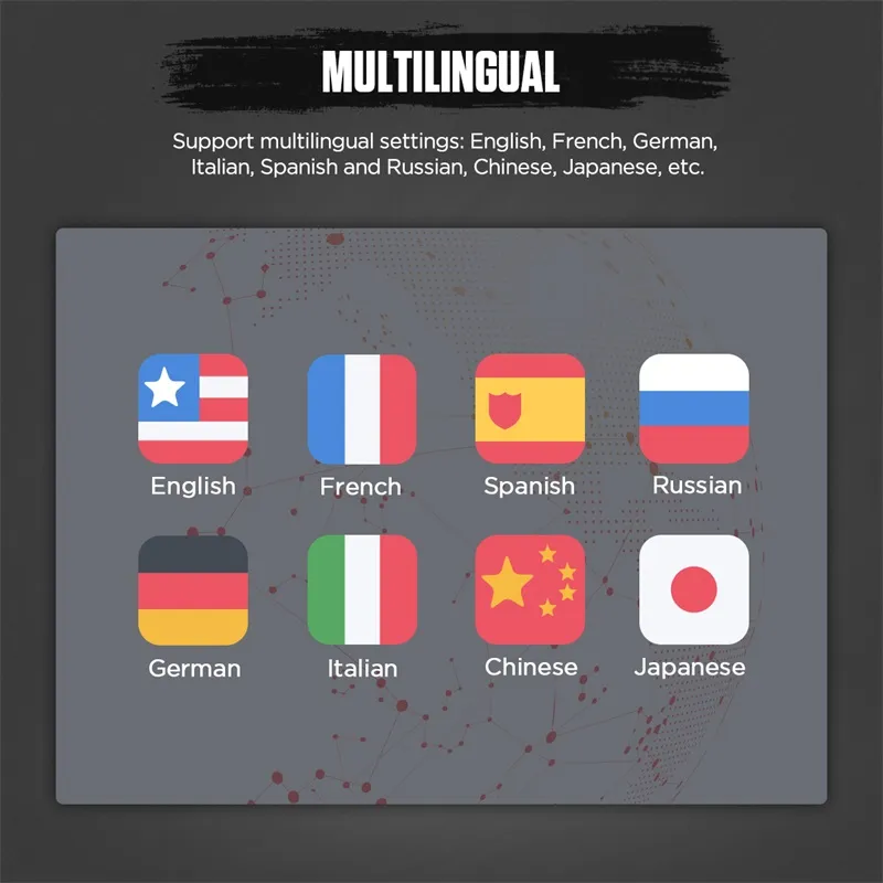 6.[mehrsprachig]: Unterstützung mehrsprachige Einstellungen: Englisch, Französisch, Deutsch, Italienisch, Spanisch und Russisch, Chinesisch, Japanisch, etc.