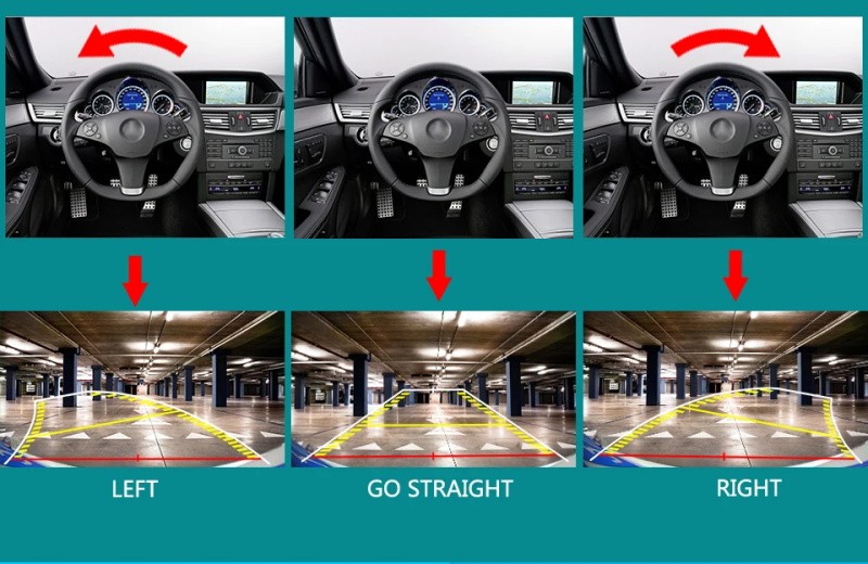 1. HD dynamische Flugbahn Kofferraum griff Auto Rückfahr kamera