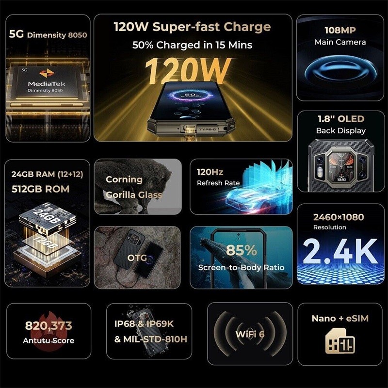 Oukitel WP30 Pro 5G Android 13 6.78" FHD+ Display 12GB RAM 512GB ROM Robustes Smartphone 120W Superladung 11000mAh