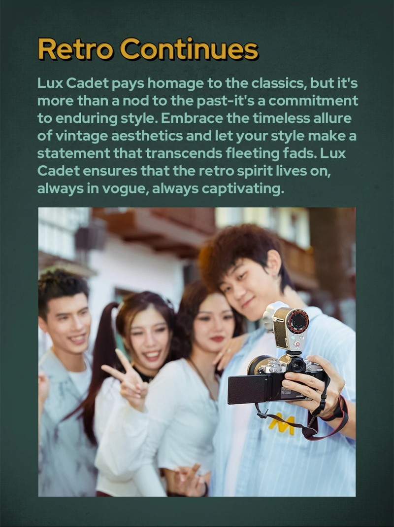 Die ästhetischen Merkmale klassischer Retro-Muster werden in LUX CADET geschickt mit den praktischen Funktionen moderner Technologie kombiniert. Es erfüllt nicht nur die täglichen Fotobedürfnisse, sondern verleiht dem modernen Leben auch Eleganz und Charme.