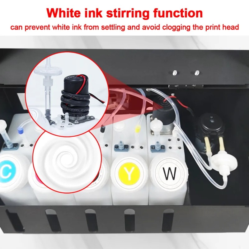 Rühren Sie die weiße Tinte kontinuierlich, um den Niederschlag weißer Tinte zu verhindern, wodurch verhindert wird, dass der Druckkopf weiße Tinte verstopft.
