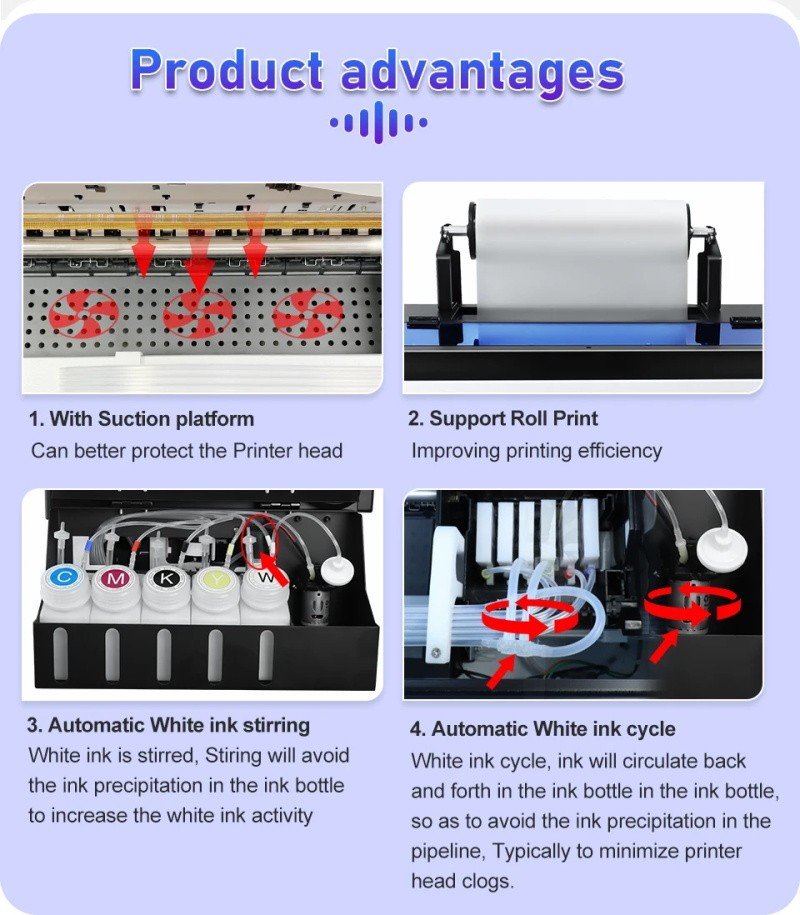 Ununterbrochen weiße Tinten zirkulation, um weiße Tinte von weißer Tinte Niederschlag und Verstopfung zu verhindern.