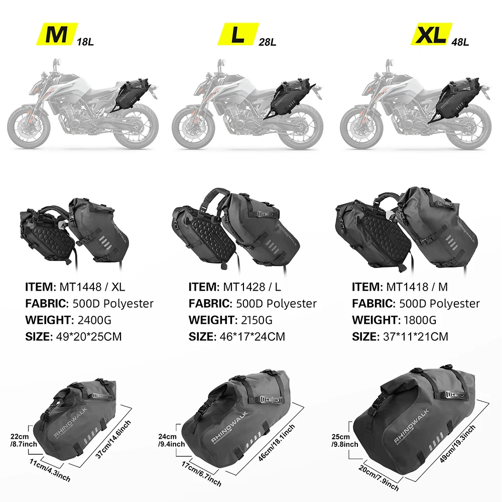 Rhinowalk Motorrad Tasche 100% Wasserdichte 18L/28L/48L Große Kapazität 2 Pcs Universal-Fit Motorrad Pannier Tasche Sattel seite Taschen