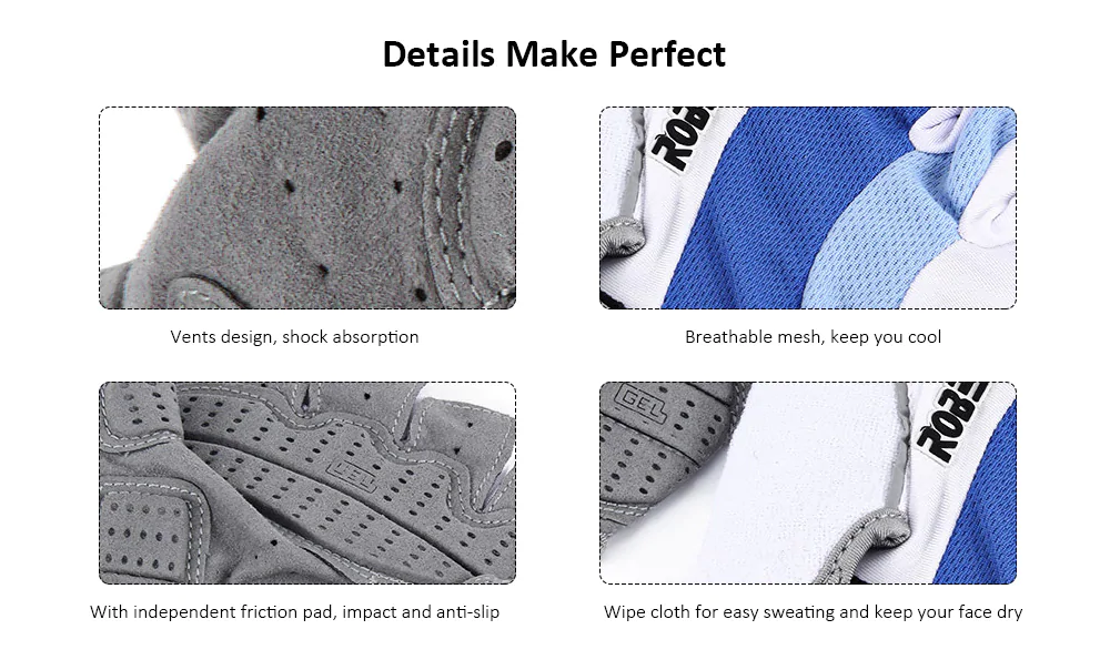 Robesbon Half Finger Fahrradhandschuhe, mit Anti-Rutsch-elastischen Rippen Stoff Material, das Ihre Handfläche vor Schock schützen kann, es kann auch Schweiß absorbieren und lüften. Mit Zauberband, um die am besten geeignete und angenehme Länge an Ihr Handgelenk anzupassen. Diese Robesbon Half Finger Fahrradhandschuhe sind ideal für Outdoor-Aktivitäten verwenden.