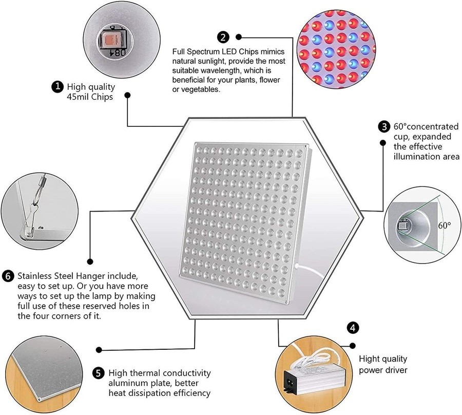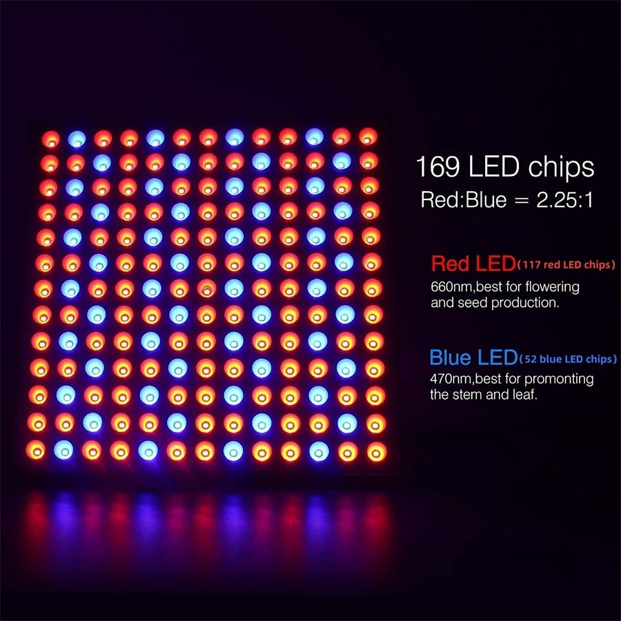 Im Winter gibt es keinen Sonnenschein, und Pflanzen brauchen Licht, um die Photosynthese durchzuführen und besser zu werden. Diese rote und blaue LED Pflanzenlampe winter kann Pflanzen mit dem wichtigsten roten und blauen Licht versorgen, das für das Wachstum benötigt wird, Diese LED Pflanzen lampe enthält 117 rote LED-Chips (630nm Wellenlänge) + 52 blaue LED-Chips (470nm Wellenlänge), die das Pflanzenwachstum von Blättern fördern, Blüte fördern und Wachstumsgeschwindigkeit effektiv erhöhen