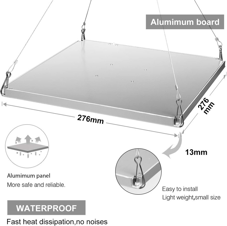 Roleadro 75w Led grow Light Größe: 276 * 276 * 14mm, empfohlene Höhe: 0.3 m - 0.8 m. Familienpflanzhelfer helfen Ihnen, Gemüse, Sämlinge und Blumen glücklich anzubauen. Das Rote und blaue Licht ist die wichtigste Lichtquelle für die Pflanzwachstum. Wir adaptieren das beste Verhältnis von Rotem und Blauem auf dieser pflanzenlampe LED Vollspektrum, um Pflanzen wachsen schneller zu helfen. Pflanzenlampe grow light Sehr nützlich für die Blumen- und Obstpflanzen.