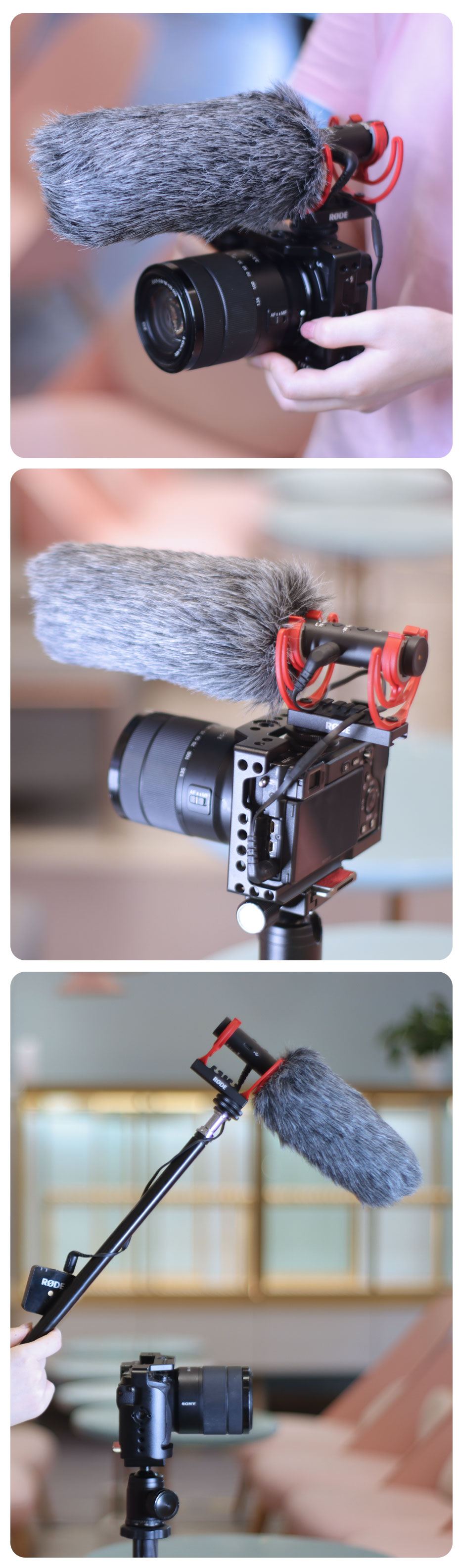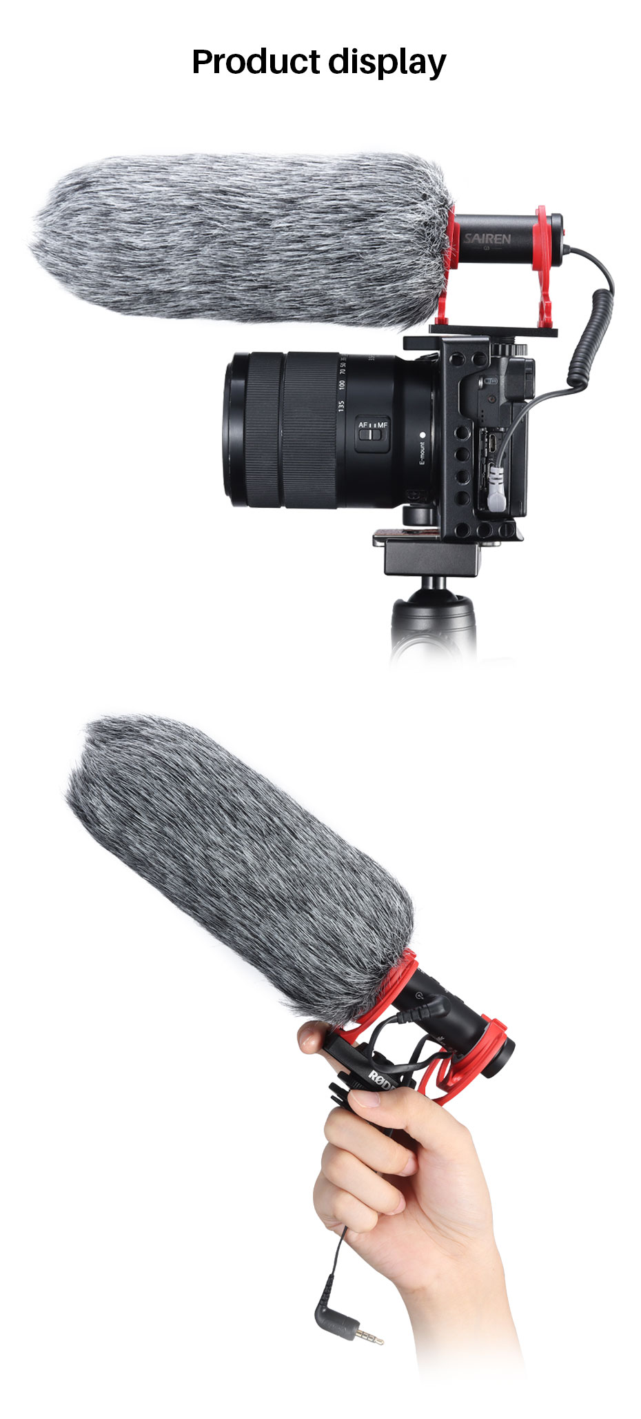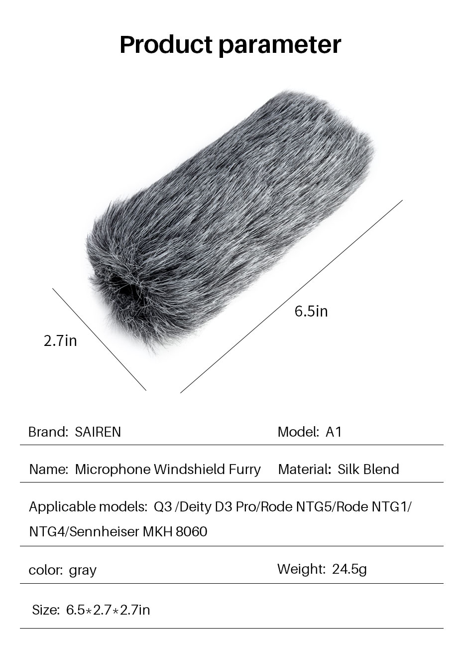 1.Professioneller Windschutz und geräuscharmes Design, angenehm zu berühren, effektiv wind-, staub- und spritzwassergeschützt, geeignet für Interview- und Kondensatormikrofone.