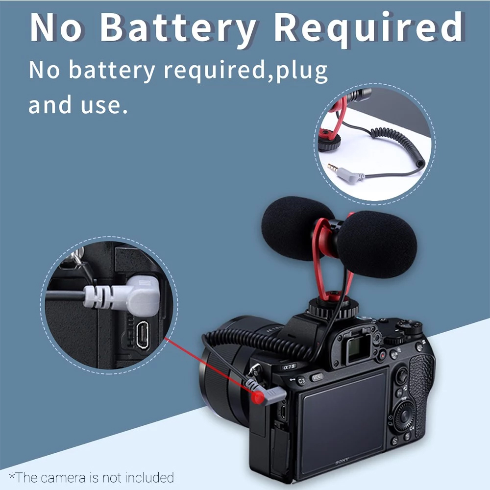 3,5-mm-TRRS-Steckerdesign, kompatibel mit Smartphones und DSLR-Kameras; Kein Akku erforderlich, Plug & Play, sehr bequem zu bedienen.