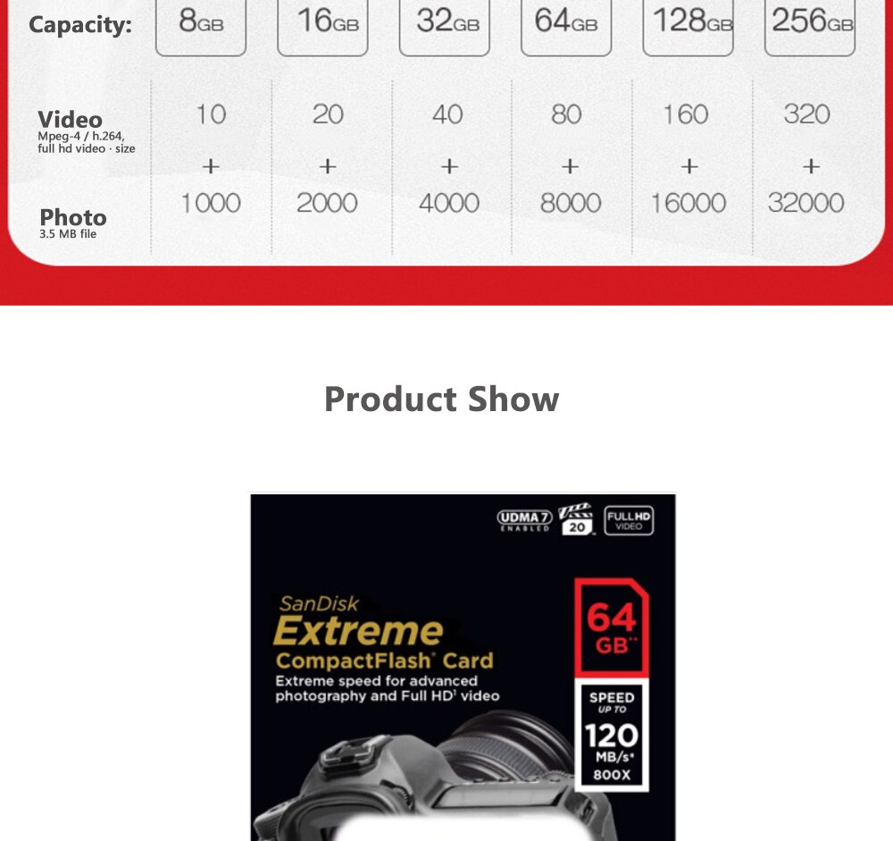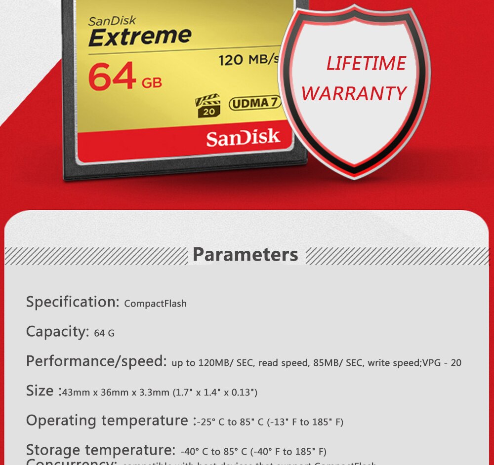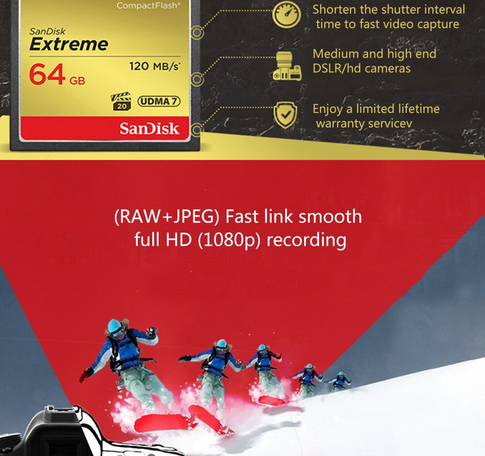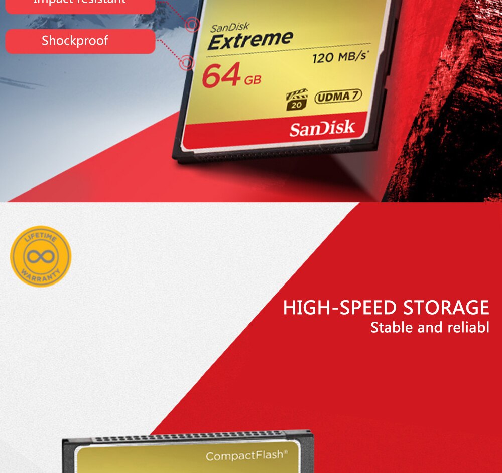 SanDisk CF-Speicherkarte (CompactFlash) UDMA7 Extreme Speed Edition Lesegeschwindigkeit 120MB/s Schreibgeschwindigkeit 85MB/s 32G 64G 128G