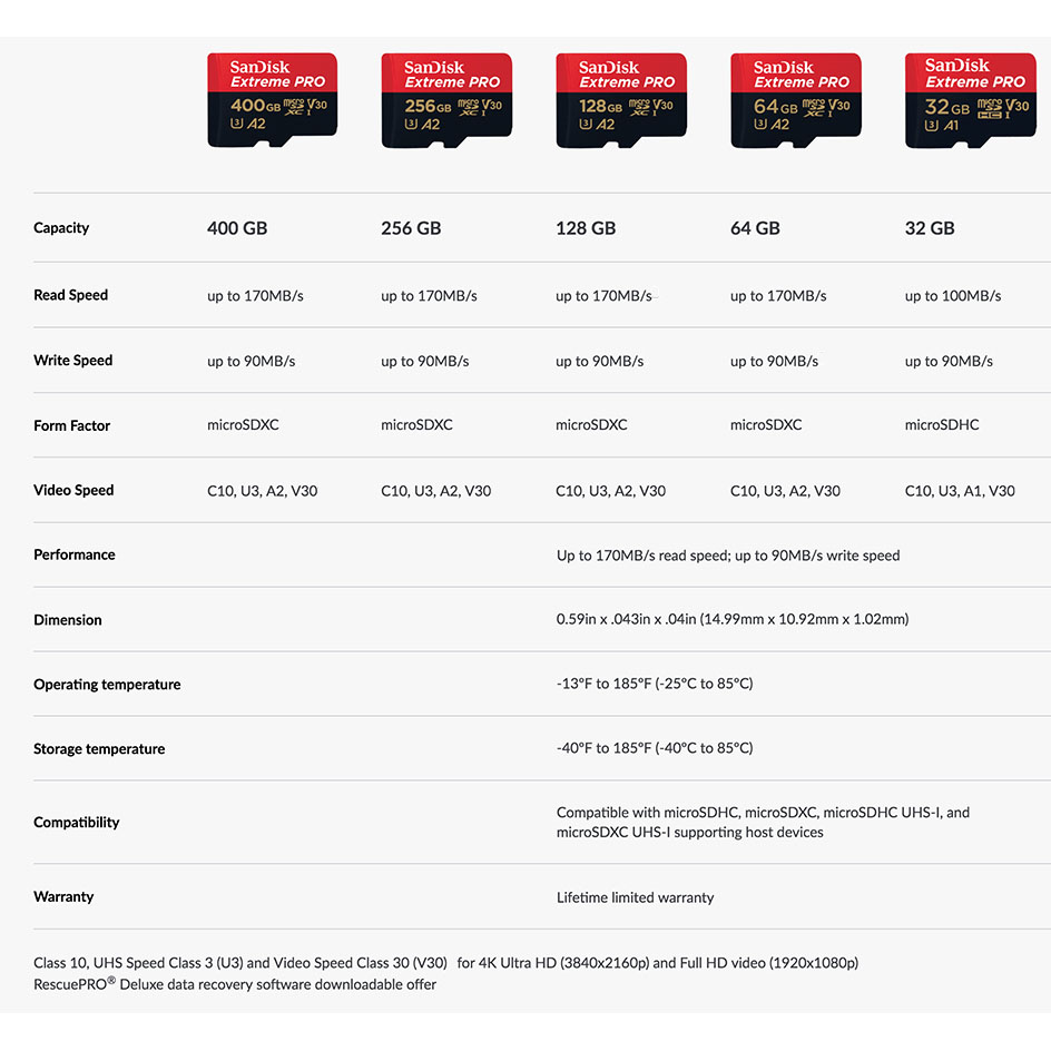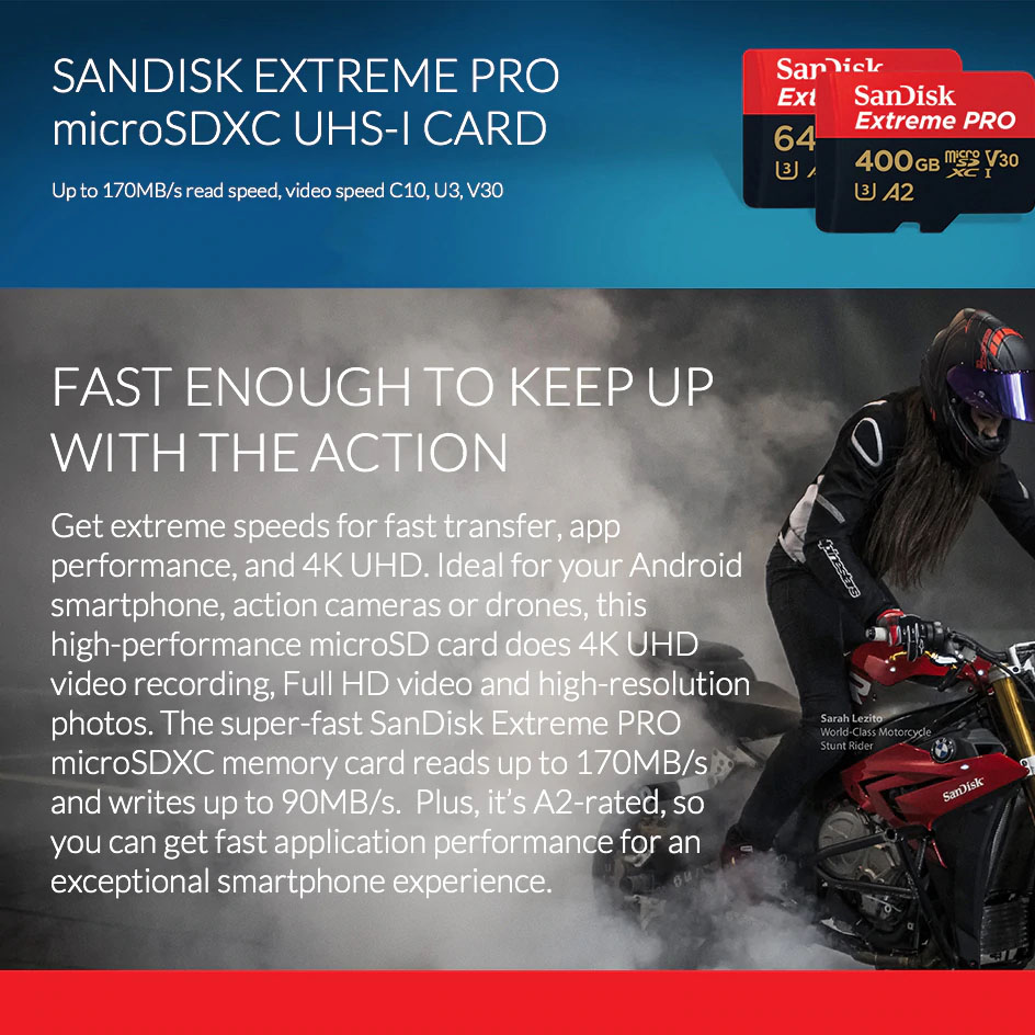 SanDisk TF Speicherkarte U3 C10 V30 A2 Extrem schnelle mobile Lesegeschwindigkeit 170MB/s Schreibgeschwindigkeit 90MB/s 32G 64G 128G 256G 400G 512G