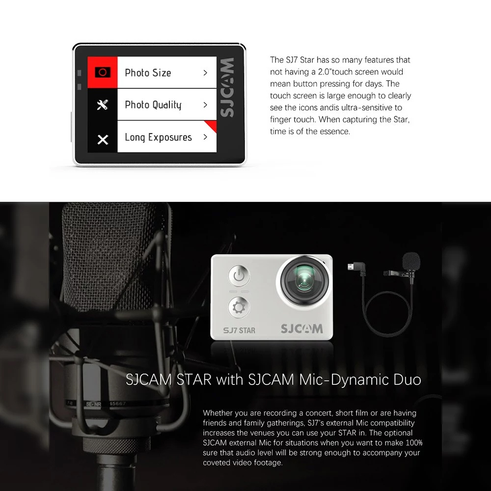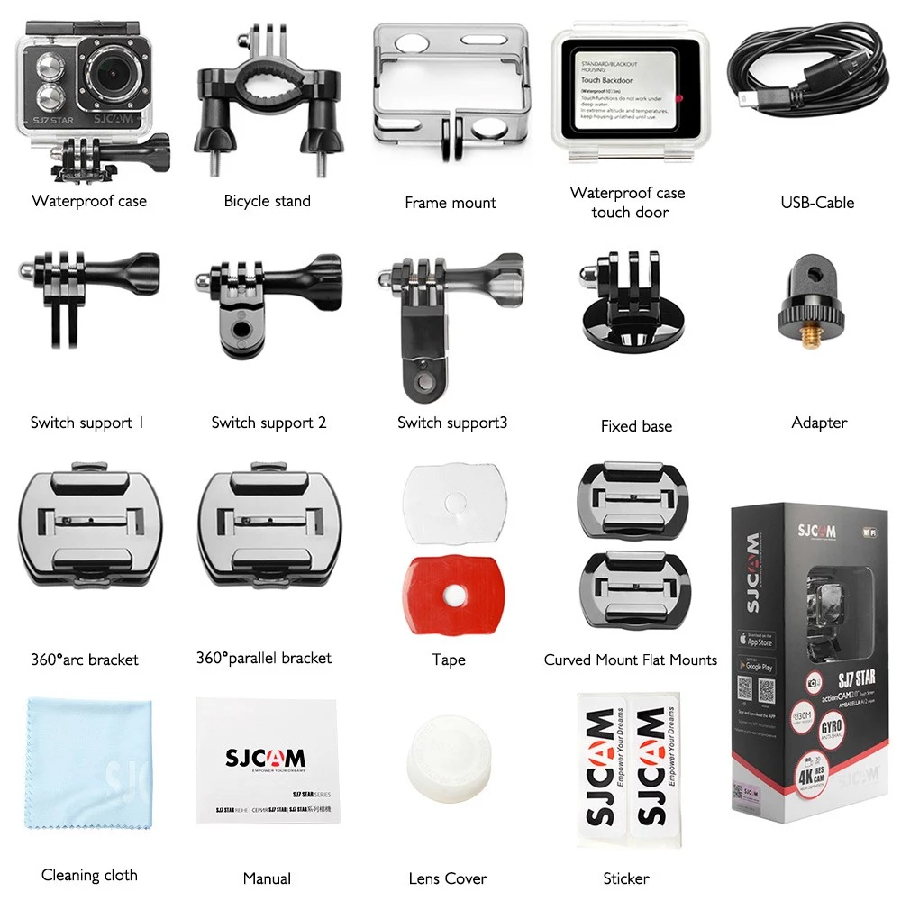 Robustes Metallgehäuse macht den Action-Camcorder haltbarer, es kommt mit einer Vielzahl von Halterungen, die es dem Benutzer ermöglichen, die Kamera wahlweise als Fahrradhelmkamera oder Schnorchelkamera zu montieren. Wiederaufladbare 1000mAh Li-Ion-Akku hat eine bessere Leistung als frühere SJCAM-Modelle, kann als Ski-Kamera / wasserdichte Tauchkamera weit verbreitet sein.