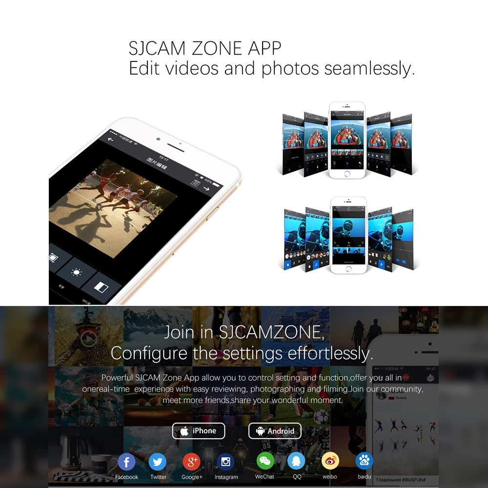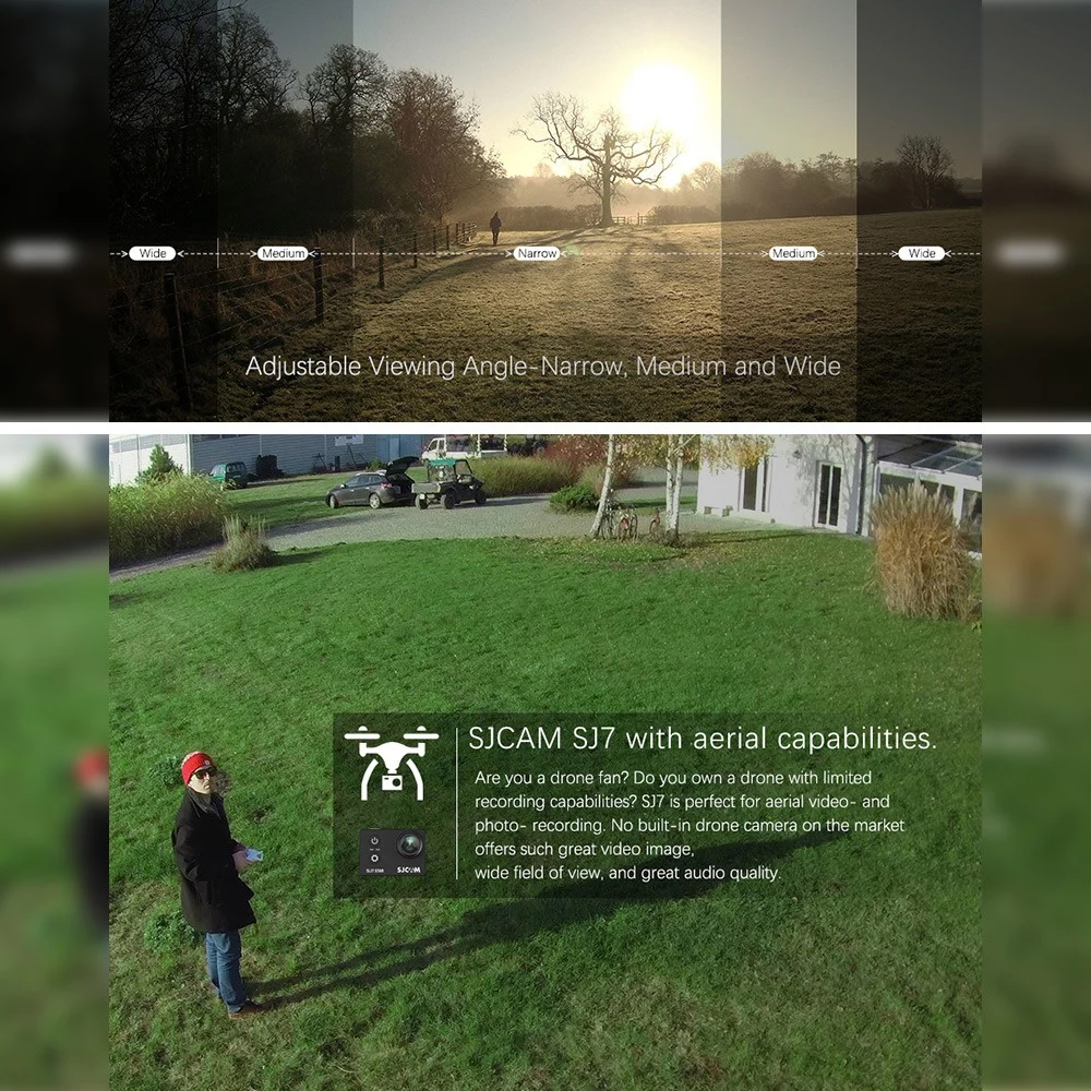 Drahtlose Verbindung und Fernbedienung, laden Sie die SJCAM APP in Ihr Telefon und steuern Sie Ihre Action-Kamera drahtlos über die APP. Oder per Fernbedienung von unserer Smart-Band, übertragen Sie Ihre Aktion in wenigen Minuten über mobile SJCAM APP auf mobile Gerät, teilen Sie Ihre wunderbaren Momente sofort.
