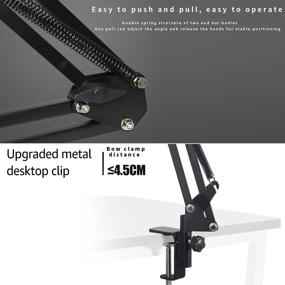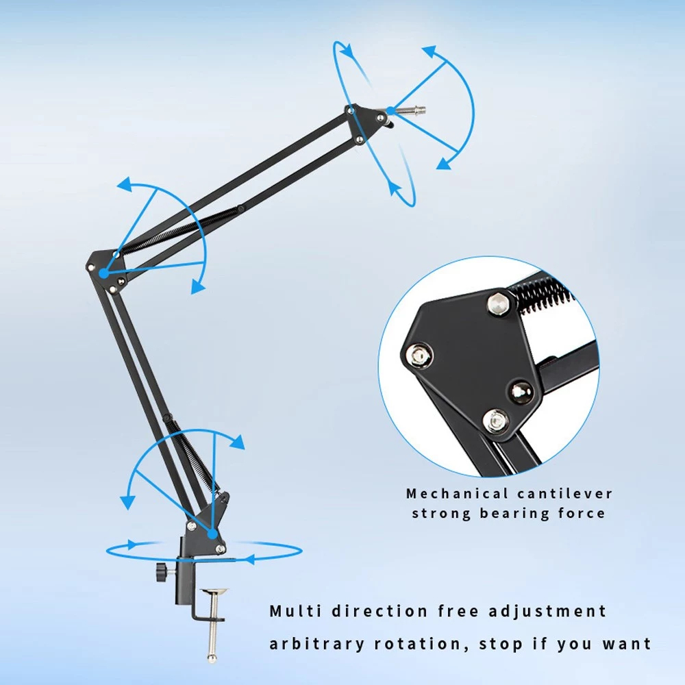 Mit einem flexiblen und langlebigen Metallscherenarmständer kann er problemlos auf dem Tisch montiert werden.
