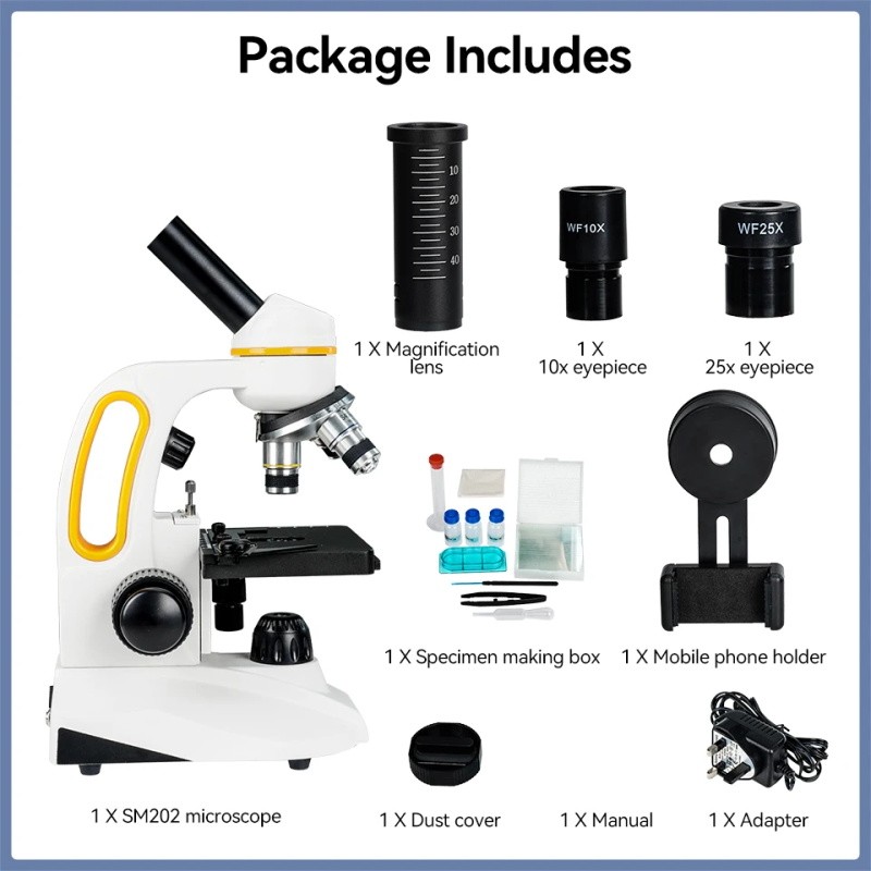 Svbony sm202 zusammen gesetztes Mon okular mikroskop 40-2000x Dual-LED mit Handy-Adapter für erwachsene Studenten Labor zellstruktur