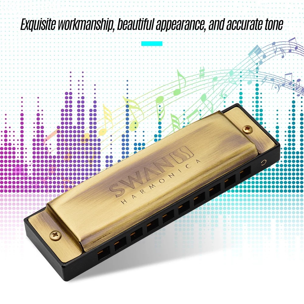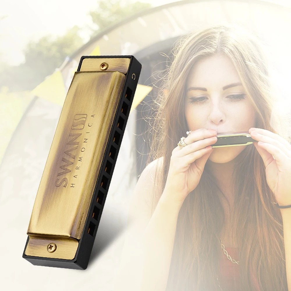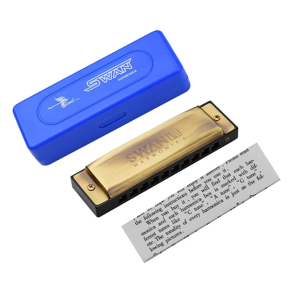 10-Loch-Mundharmonika in kompakter Größe mit Aufbewahrungskoffer, einfach zu tragen, jederzeit und überall zu spielen.