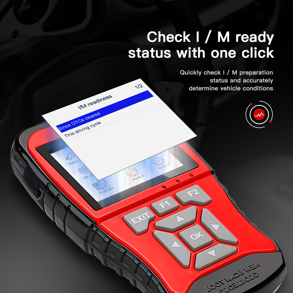 1. unterstützung alle 10 modi von motor diagnose 2. geeignet für die meisten 1996 und neueren fahrzeugen (OBD II und KÖNNEN)-inländischen und importierten. 3. gebaut-in one-key-ICH/M vorbereitung funktion, können schnell durchführen zustand emission vorbereitung inspektion und fahren zyklus überprüfung. 4. lesen/klar angemeldet code, shop code und einfrieren code. 5. abrufen fahrzeug informationen (VIN, CIN und CVN). 6. verbesserte funktion Mode6, mode8, echt-zeit daten wiedergabe