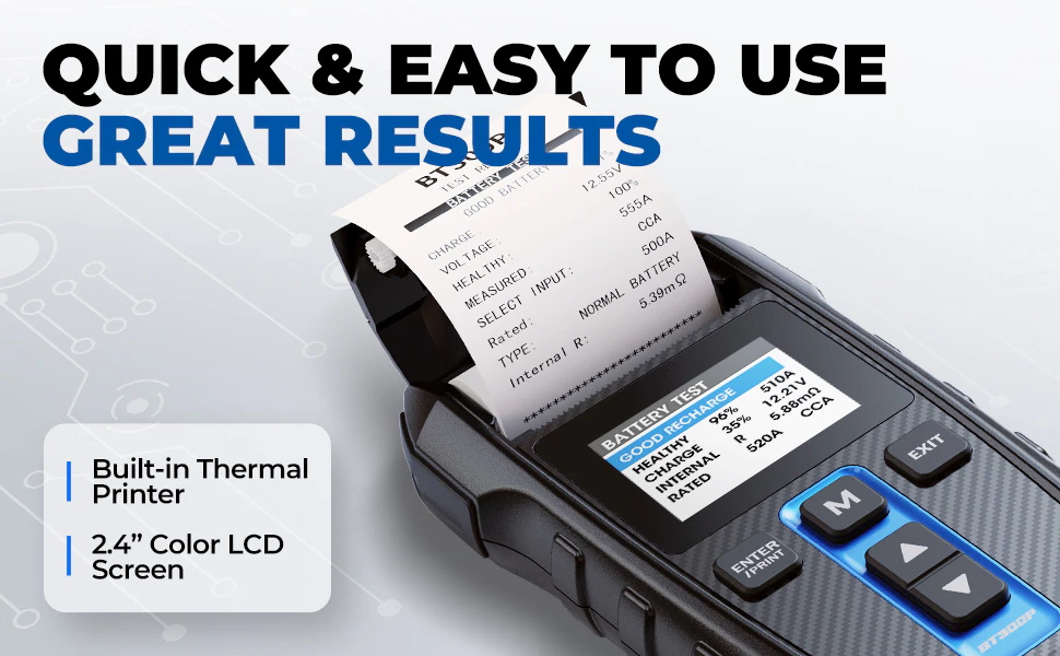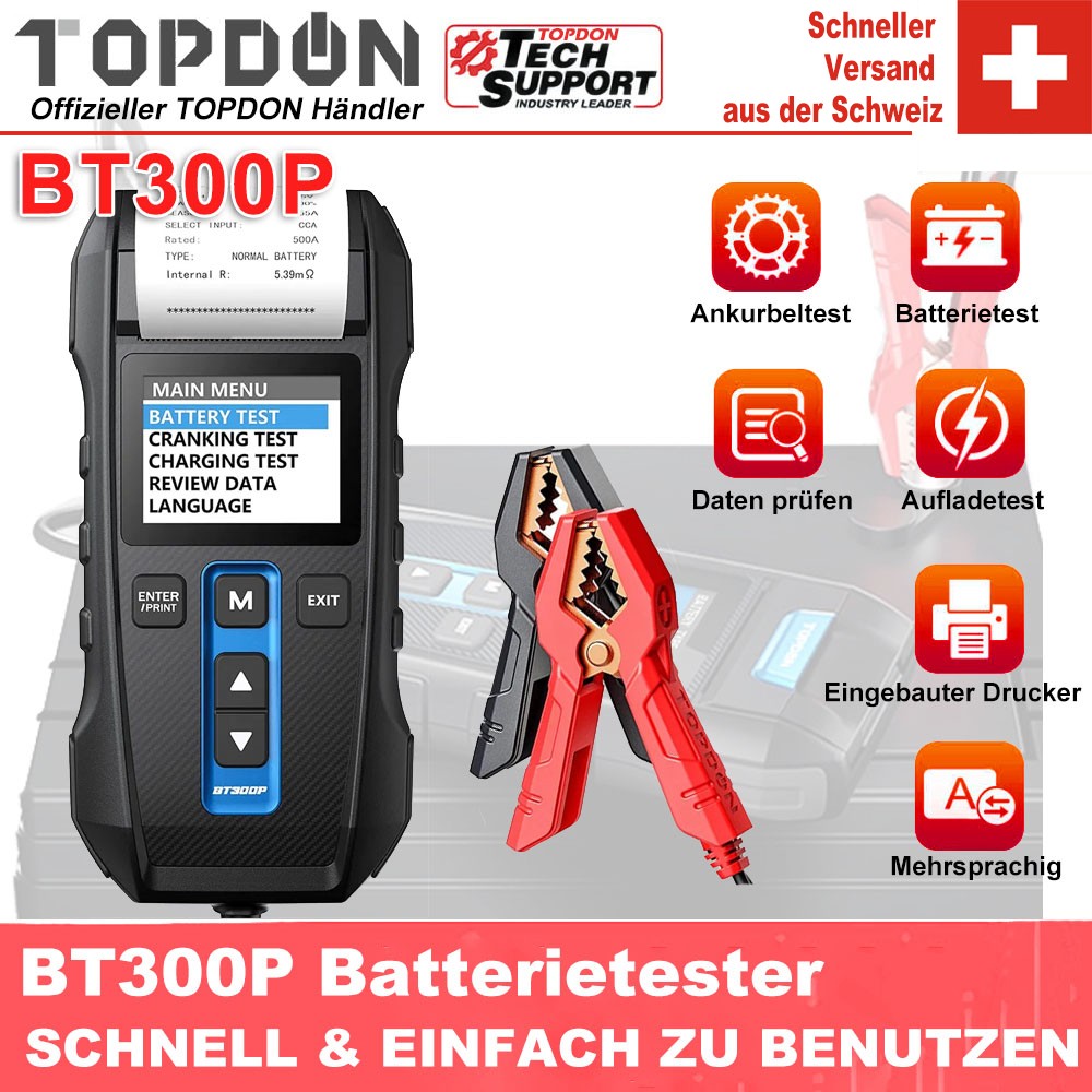 Topdon Auto Batterie Tester BT300P mit Druck 12V Auto Batterie Tester mit Drucker Batterie Last Test für Motorrad Auto ladung