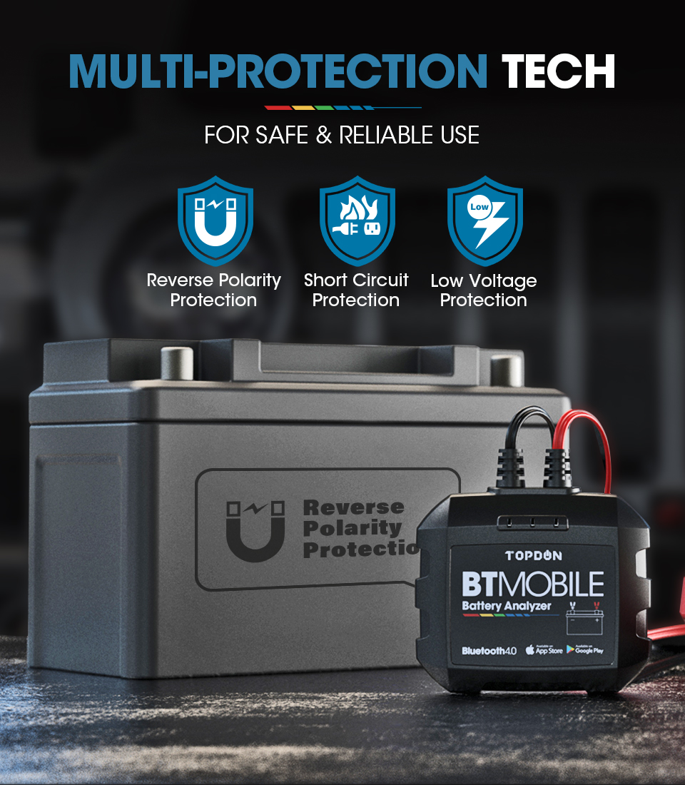 Angst vor der elektrische schock, und die mögliche schäden zu die batterien? BTMobile ist speziell mit Kurzschluss, Verpolung, und Überspannung Schutz, zu gewährleisten eine ultra-sicher betrieb während batterie prüfung.
