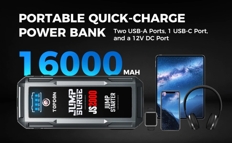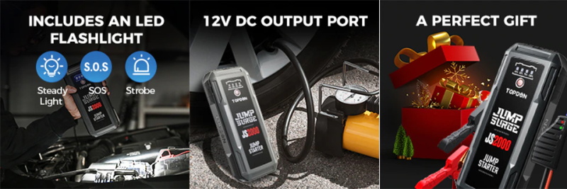 TOPDON JS2000 2000A 12V Auto Starthilfe Battery Booster Battery Tester mit 16000mAh power bank