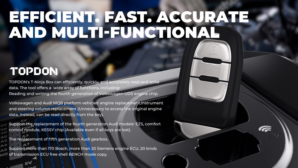 Die T-Ninja Box von TOPDON kann Daten effizient, schnell und genau lesen und schreiben. Das Tool bietet eine Vielzahl von Funktionen,