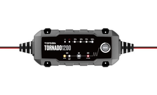 TOPDON T1A (TORNADO1200) Server als intelligentes Ladegerät für 6V / 12V Blei-Säure- und 12V Lithium-Säure-Batterien bis zu 80 Ampere-Stunden mit doppelter Ladegeschwindigkeit, 10 Ladeschritten, 5 Lademodi, geringem Gewicht, Tragbarkeit, Benutzerfreundlichkeit, kompaktes Design und andere außergewöhnliche Eigenschaften, die sich als äußerst sicher und zuverlässig zum Laden, Reparieren und Warten verschiedener Batterien erweisen.
