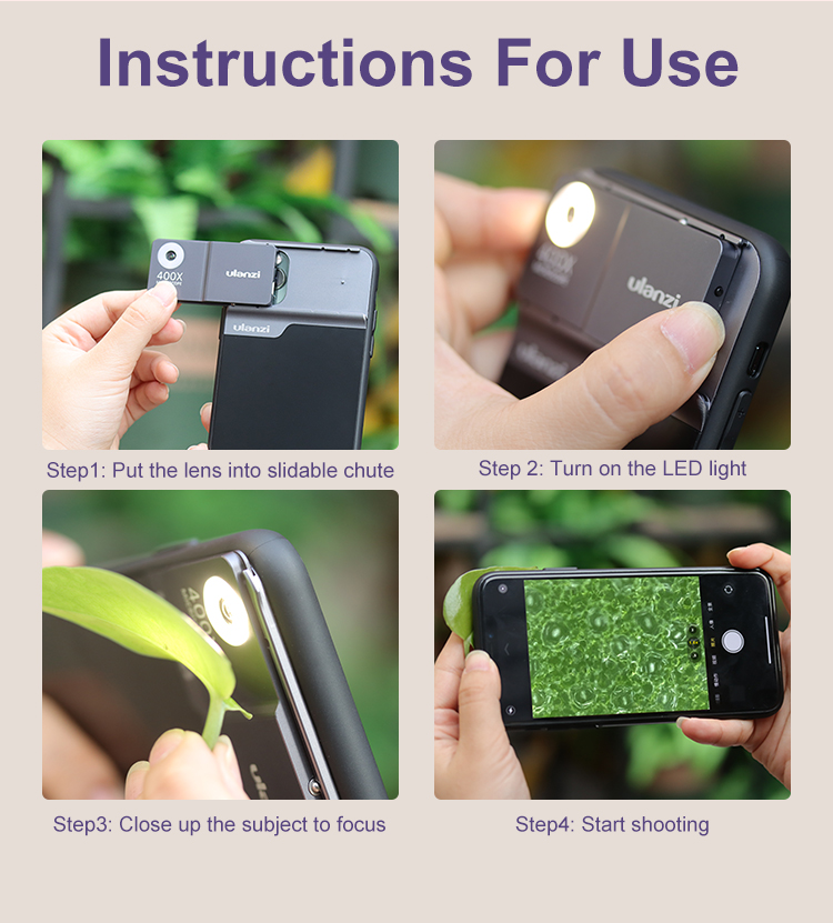 Hinweis: Wenn sie verwenden diese 400X Mikroskop Telefon Objektiv schießen, bitte stellen sie ihre kamera zu 1,5 X oder mehr.
