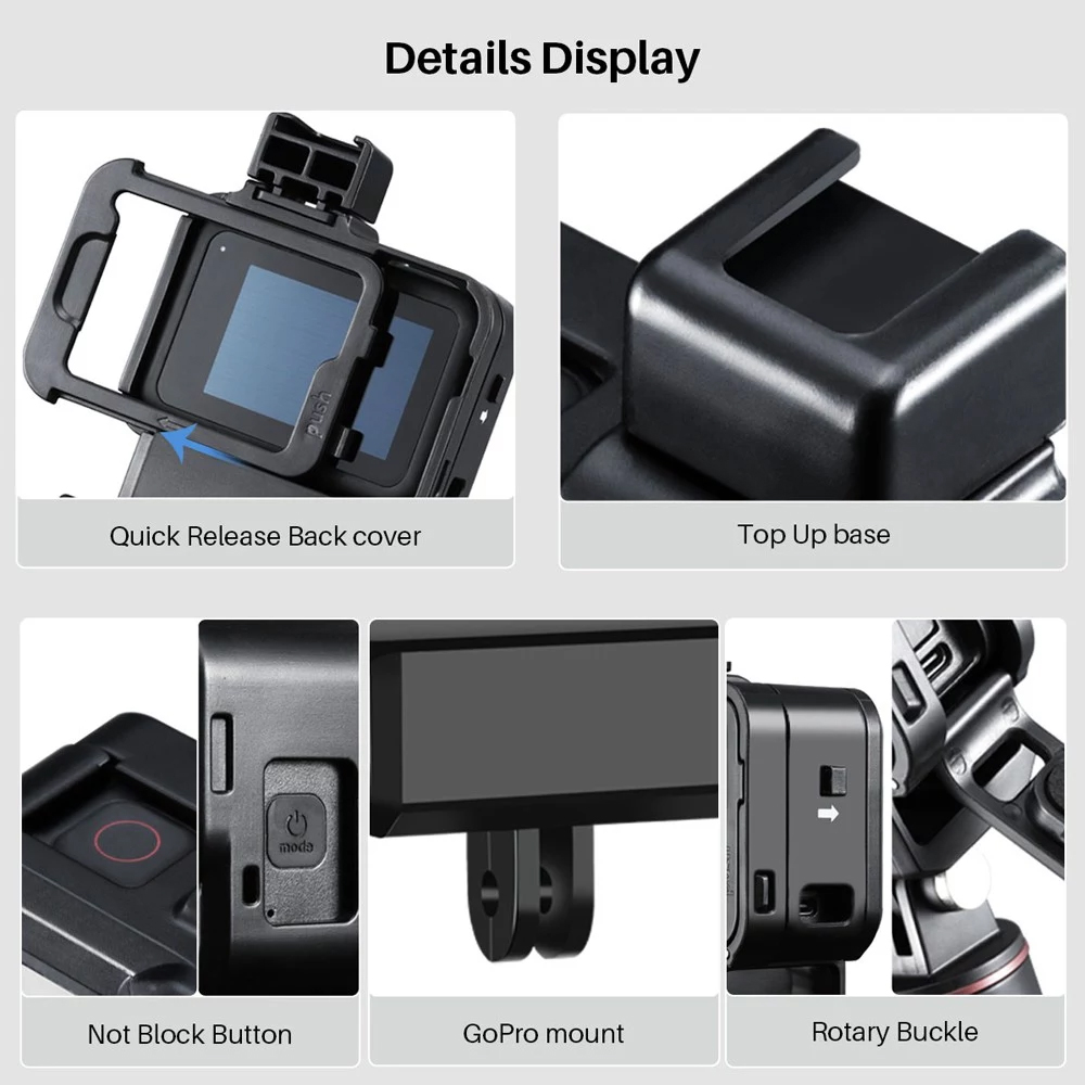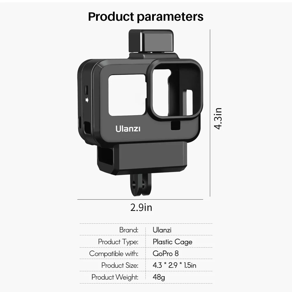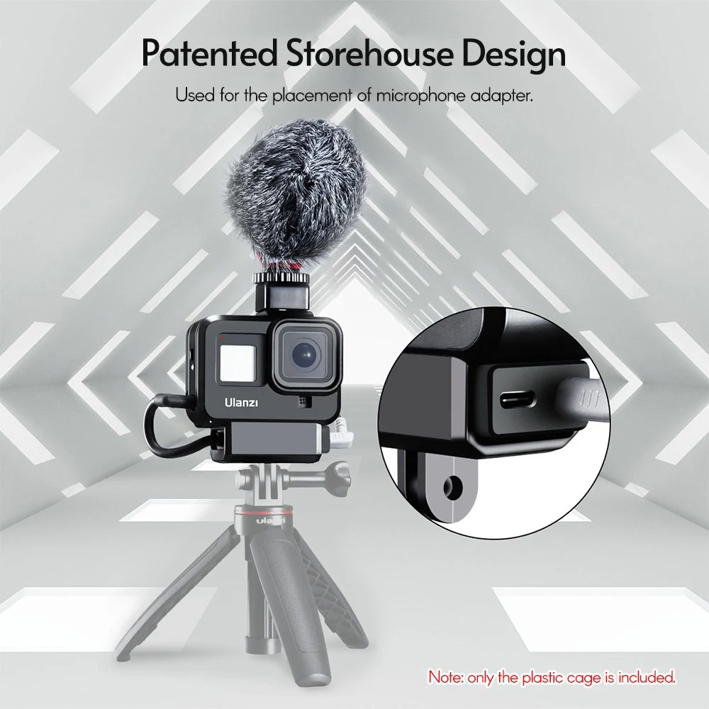 Der Kunststoffkäfig Ulanzi G8-9 wurde für den Schutz von Actionkameras entwickelt und ist mit GoPro 8 kompatibel. Er blockiert keine Tasten.