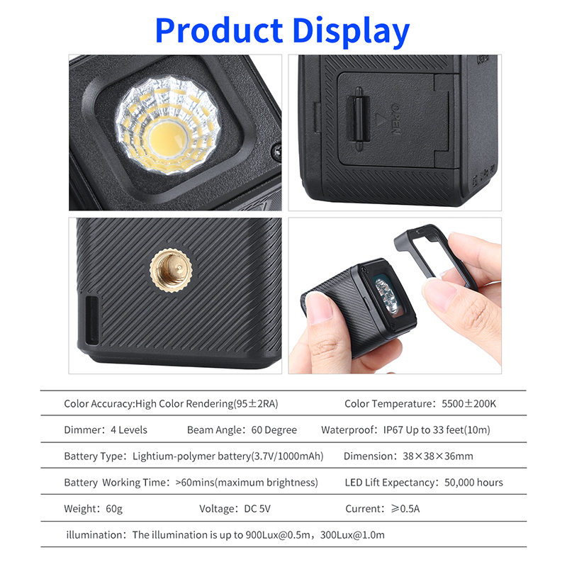 Ulanzi L1 Pro Wasserdicht Dimmbare Mini LED Licht für Gopro DSLR Dji Gimbal Vielseitig Mini Licht Camping Radfahren Beleuchtung