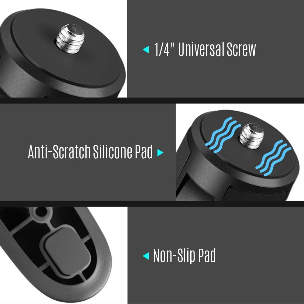 Mit einer 75 ° -Weitwinkelverlängerung verfügt das Stativ über eine starke Griffkraft, um stabil zu stehen. sowie Silikonkissen auf der Unterseite, nicht leicht zu rutschen.