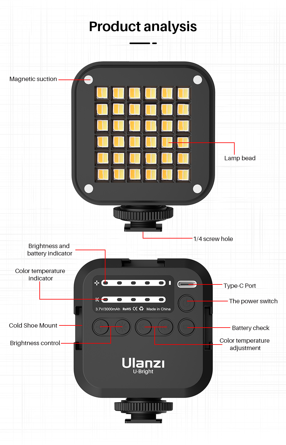 Ulanzi U-Bright Mini LED Video Beleuchtung 2700k-6500k 7,5 W mit 6 Farben RGB Wirkung filter Für fotografie Vlog Füllen Licht