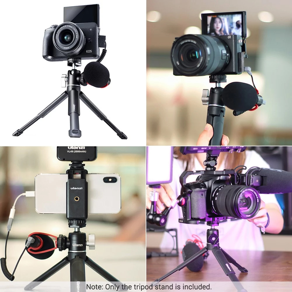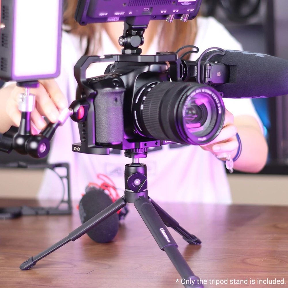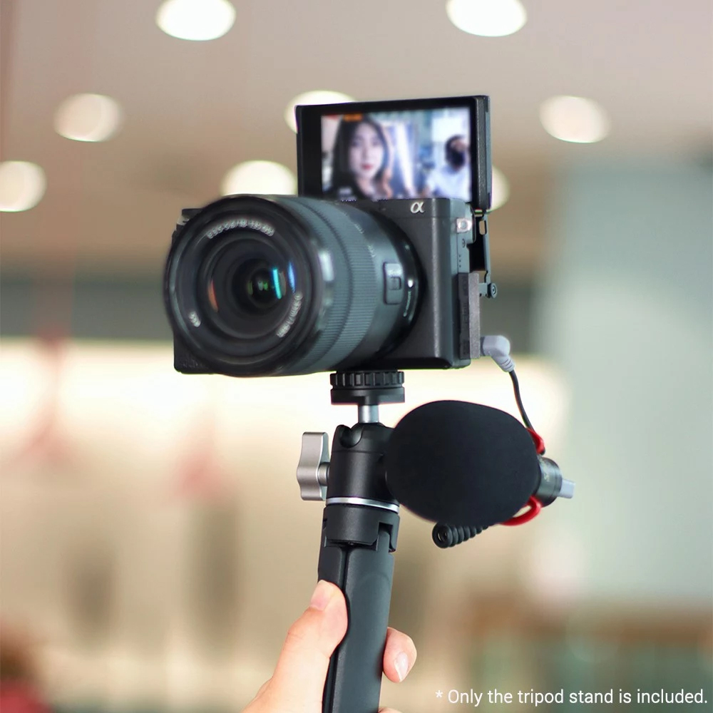 Dual Cold Shoe & 1/4 Mount: Die abnehmbare Kugelkopfplatte verfügt über eine 1/4 Schraube und einen Kaltschuh für den doppelten Gebrauch. Mit der Kaltschuhseite des Kugelkopfes sind Verlängerungen wie Mikrofon und LED-Licht erhältlich.